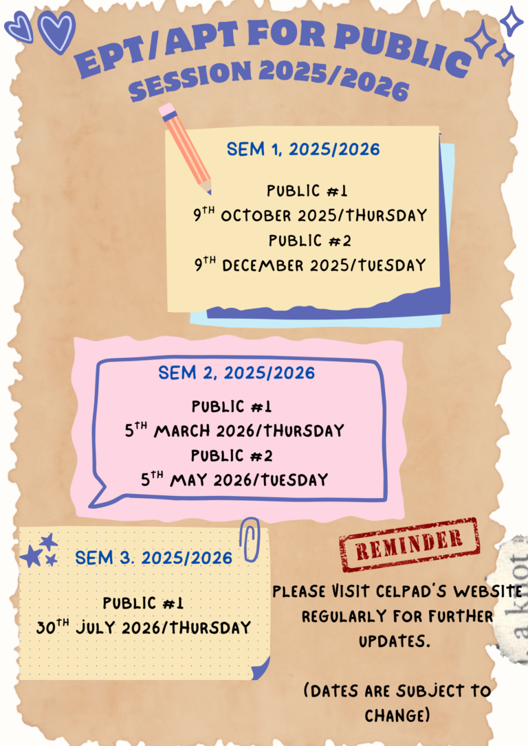 EPT Coordinator: Mdm Asmeza Arjan (eptcelpad@iium.edu.my)