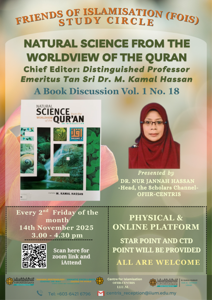 IIUM Centre for Islamisation or CENTRIS was established in May 2012 to spearhead the Islamisation mission of the University and systematize its various efforts especially with regard to Islamisation of human knowledge (IOHK).