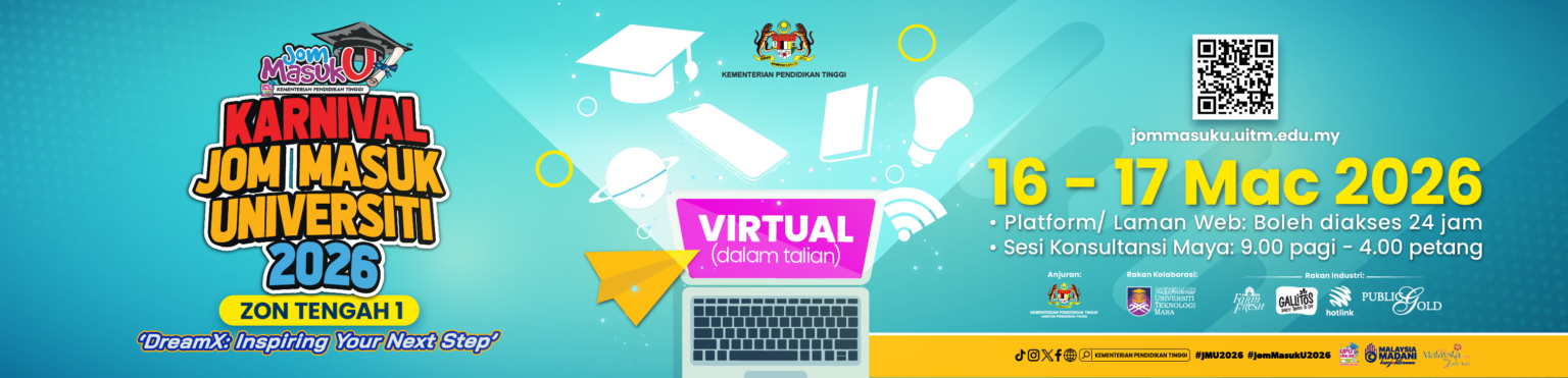 Jom Masuk Universiti (JMU) 2026 – Central Zone 1 is happening virtually on 16–17 March 2026, hosted by the Ministry of Higher Education (KPT) and UiTM.