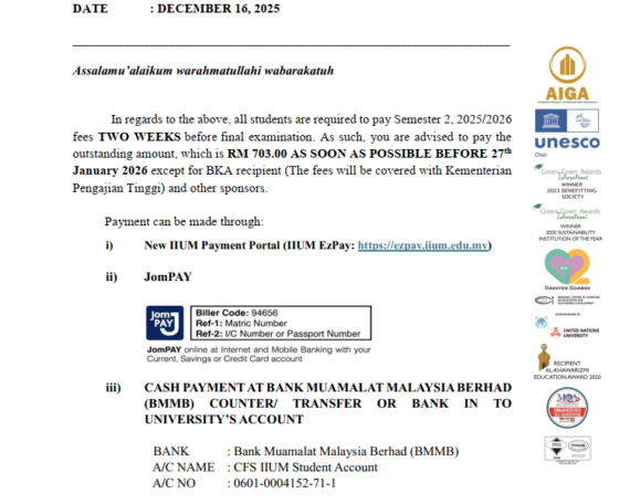 ANNOUNCEMENT TUITION FEE SEMESTER 2 2025 2026 Download