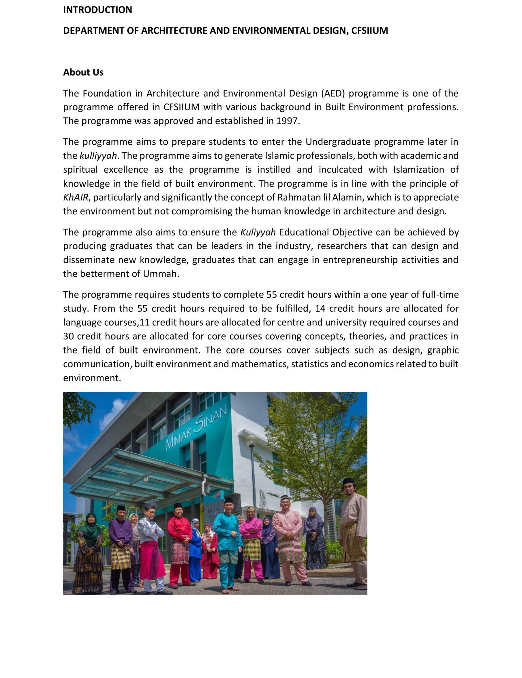 Dear students and staffs, for more information about department’s activities, general info and other announcement, feel free to browse our department’s website at this URL: https://sites.google.com/iium.edu.my/cfsaed/home