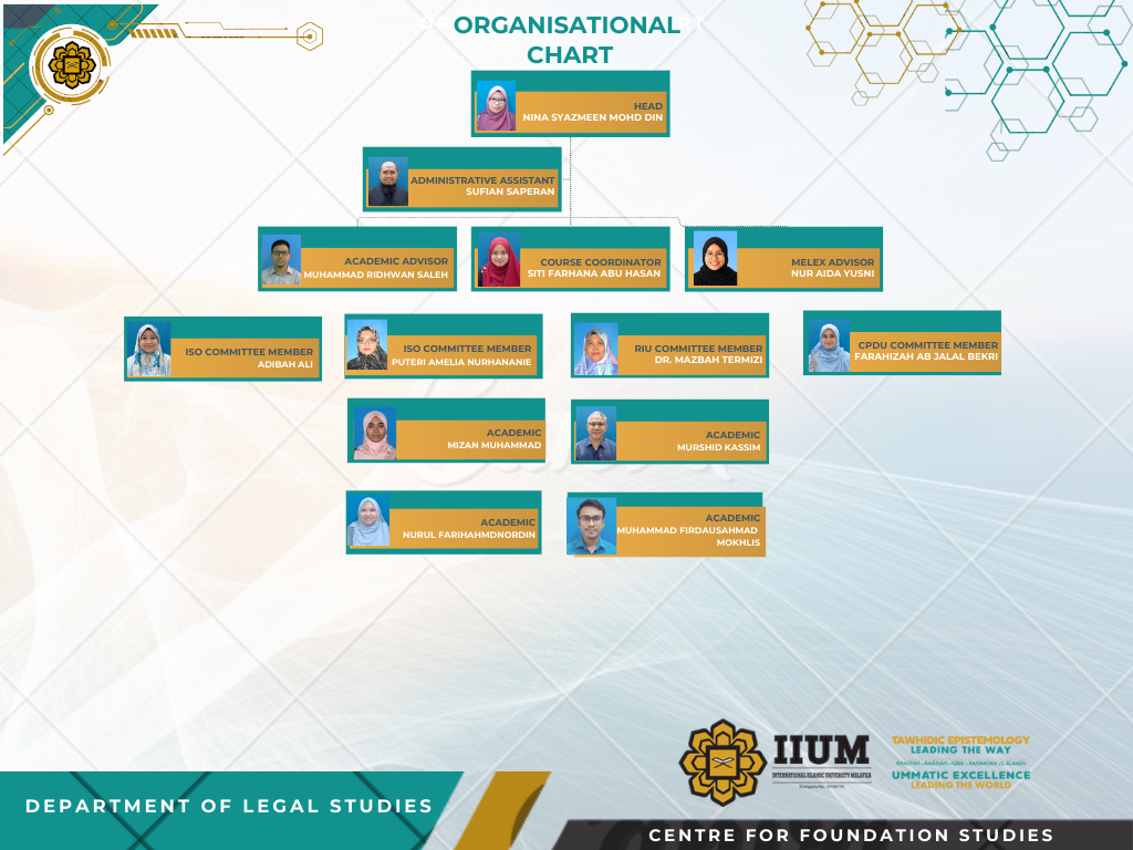 The Department of Legal Studies is the academic department that offers the Foundation in Law Programme at CFS IIUM, Gambang Camous. The program is uniquely designed to set a strong foundation to students’ understanding of both legal knowledge; civil and Shariah as well as basic legal skills for them to pursue a degree in law. Upon successful completion of this course, students can choose to pursue their Bachelor or Laws (LLB) or Bachelor of Laws (Syariah) (LLBS) at the Ahmad Ibrahim Kulliyyah of Laws (AIKOL). Manned by qualified and experienced academics coming from various legal backgrounds, the Department of Legal Studies, CFS IIUM has become one of the leading centres in offering quality law foundation programme in Malaysia.
