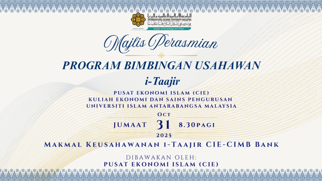 The i-Taajir Entrepreneur Mentorship Program, organized by the Centre for Islamic Economics (CIE) under the Kulliyyah of Economics and Management Sciences, International Islamic University Malaysia (IIUM), marks its third successful edition with the aim of nurturing ethical and competitive Muslim entrepreneurs. The launching ceremony, held on Friday, 31st October 2025 at the i-Taajir Entrepreneurship Lab, CIE-CIMB Bank, reflects IIUM’s ongoing commitment to empowering students and the community with practical entrepreneurial knowledge rooted in Islamic values. Notably, several alumni from previous cohorts have successfully expanded their businesses, with some operating booths around the campus, serving as inspiring examples for new participants. More than just a training initiative, i-Taajir continues to be a valuable platform for mentorship, networking, and collaboration between students, academics, and industry partners such as CIMB Bank, fostering an ecosystem of resilient and shariah-compliant entrepreneurs.