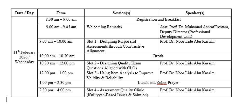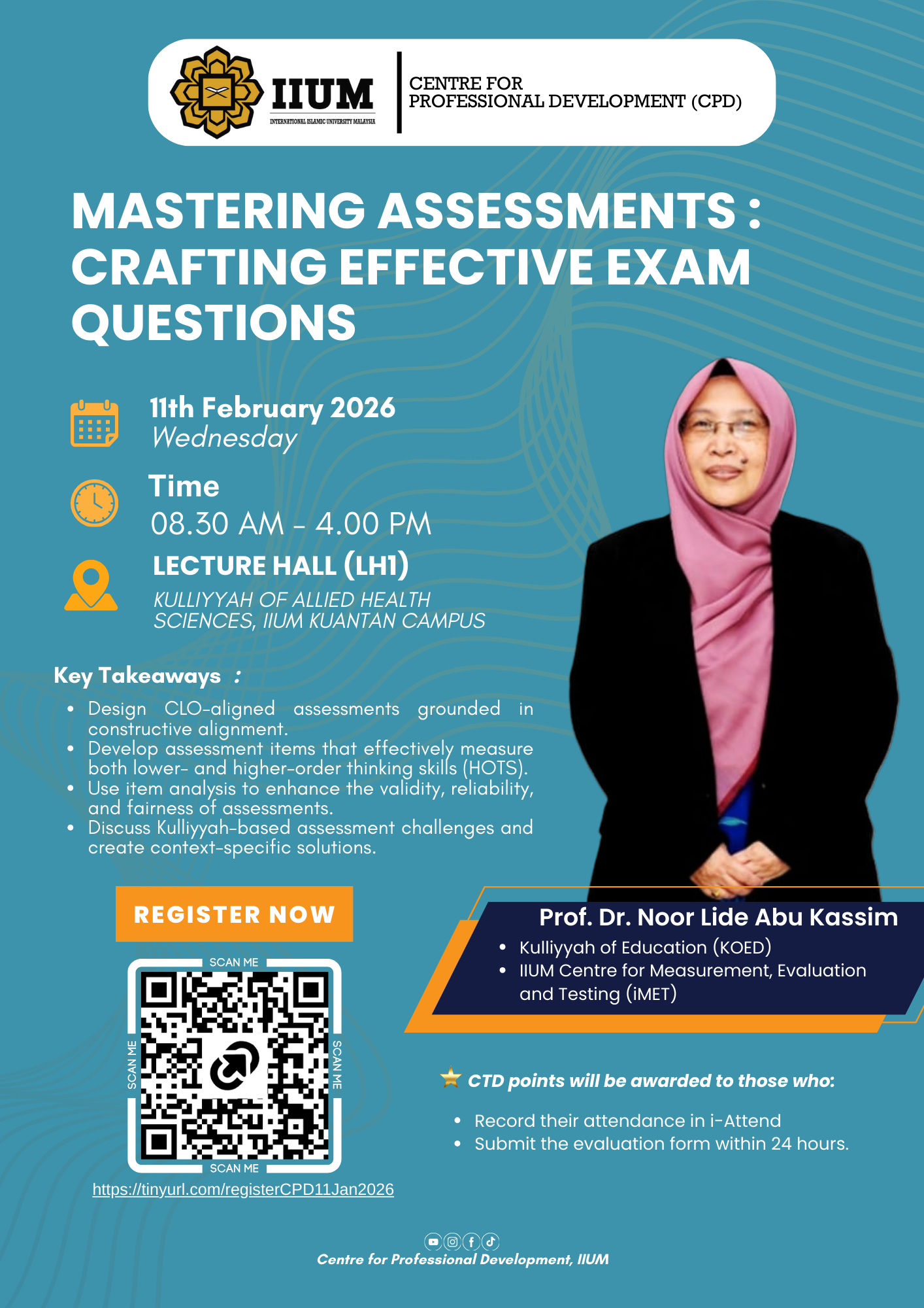 The Centre for Professional Development, in collaboration with Kulliyyah of Allied Health Sciences (KAHS) Academic Quality Assurance Liaison (AQAL), would like to invite all IIUM academic staff to enroll in this webinar, which will be held as follows: