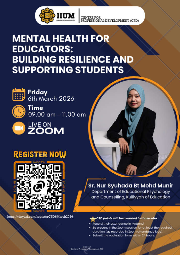 The Centre for Professional Development would like to invite all IIUM academic staff to enroll in this webinar, which will be held as follows: