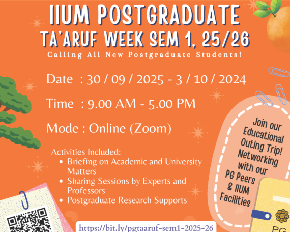IIUM PG Ta’aruf Week for New Postgraduate Students Semester 1, 2025/2026 (COMPULSORY to attend online) September 23, 2025faizrazakAnnouncement